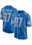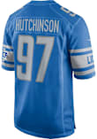 Get a piece of the Detroit Lions action with this Detroit Lions Blue Aidan Hutchinson HOME Football Jersey. You'll look like one of the team as you wear this Jersey to support your Lions. With a screen printed number on the chest, team decorations, and screen printed player name and number on the back, this Football Jersey makes a great addition to any Lions fan's closet.