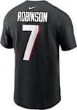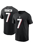 Show support for your favorite player in this Atlanta Falcons Black Name and Number Bijan Robinson Short Sleeve Player Tee! This Player T Shirt features a lightweight, dri-fit cotton material with a crew neckline and screen printed team and player graphics on the front and back, so everyone will know you cheer for Atlanta, Bijan Robinson! This is the perfect Falcons Player Tee for wearing from every day to game day. Go Falcons!