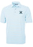 Showcase your Carolina Panthers pride at the office or on the golf course in this Cutter and Buck Light Blue Historic Virtue Eco Pique Stripe Short Sleeve Polo! You'll look sharp in this Panthers Polo, which features a stripe pattern. This Carolina Light Blue Historic Virtue Eco Pique Stripe Short Sleeve Polo Shirt is the perfect update to your professional wardrobe.
