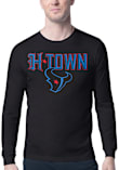 Show off your team pride in this Houston Texans Black H-Town Long Sleeve T Shirt! This Houston Long Sleeve Tee features a team logo graphic. Make sure everyone knows you root for the Texans with this Black Houston T Shirt. Go Texans!