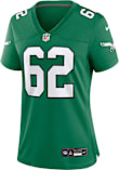 Feel like one of the team with this Philadelphia Eagles Womens Kelly Green Alt Football Jersey. Wear this Jersey to the next tailgate or game for your Eagles. With a screen printed number on the chest, team decorations, and screen printed player name and number on the back, this Womens Football Jersey is a great way to show your team spirit in style.