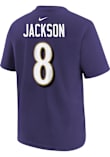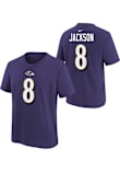Let your little Ravens fan show support for their favorite player in this Youth Lamar Jackson Short Sleeve Player Tee. This Purple Short Sleeve Player T-Shirt features a screen print player name and number.