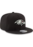 Wear your Ravens style with pride in this Baltimore Ravens New Era Black Basic 9FIFTY Snapback Hat! This Baltimore Snapback Hat features a front embroidered team logo on a structured polyester crown with adjustable snap closure and flat visor. Go Ravens!