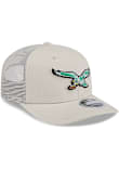Product Details Product Details New Era Low Profile Trucker 9FIFTYFront team mini leather patchMatching crown and visorBack contrast trucker meshPlastic snap closureCotton/Poly BlendCurved BillLow CrownStructuredwipe clean with cloth or cleaning kitImported Officially Licensed This Philadelphia Eagles Grey Adjustable Hat features a front embroidered team logo.