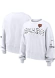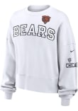Make your way to the big game in this Chicago BearsWomens White Oversized Primetime Crew Sweatshirt! This Bears Long Sleeve Sweatshirt features a team name and logo on center front and left sleeve. Stay warm and comfortable with this Womens Chicago Bears Bears Crew Sweatshirt.