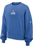 Make your way to the big game in this Detroit LionsWomens Blue Rewind Oversized Crew Sweatshirt! This Lions Long Sleeve Sweatshirt features a team name and logo on center front. Stay warm and comfortable with this Womens Detroit Lions Crew Sweatshirt.