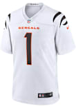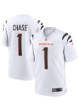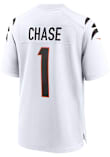 Get a piece of the Cincinnati Bengals action with this Cincinnati Bengals White Ja'Marr Chase Road Game Football Jersey. You'll look like one of the team as you wear this Jersey to support your Bengals. With a screen printed number on the chest, team decorations, and screen printed player name and number on the back, this Football Jersey makes a great addition to any Bengals fan's closet.