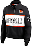Stay warm and show your Bengals spirit in this Cincinnati Bengals Long Sleeve Qtr Zip. This Womens Black Color Block Long Sleeve Pullover features a team name and logo on center front with patches on both sleeves. You'll want to wear this Cincinnati Bengals Long Sleeve Qtr Zip every day.
